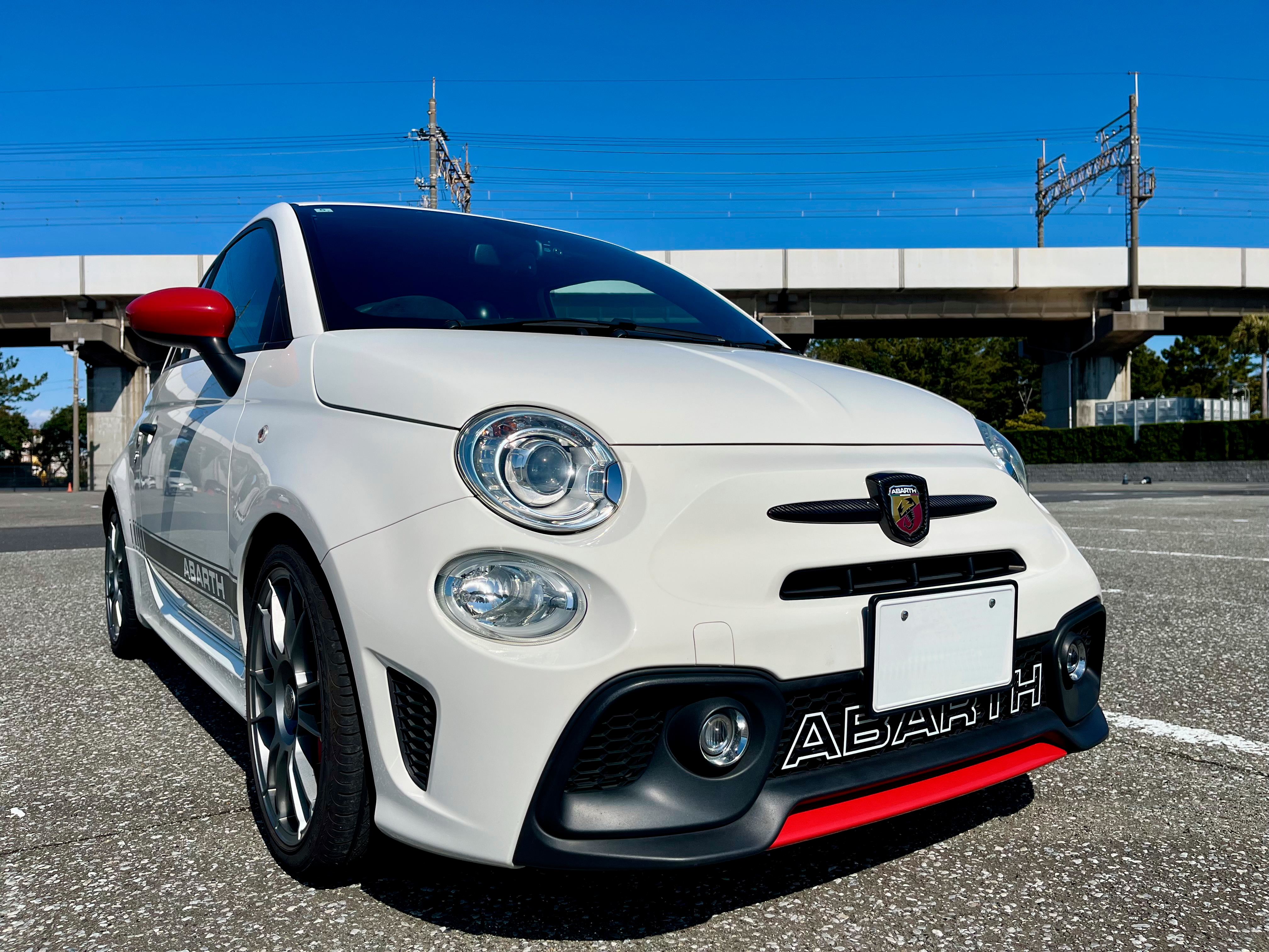 ビアンコカラーのアバルトのフロントを美しいカーボン柄が引き締めます!